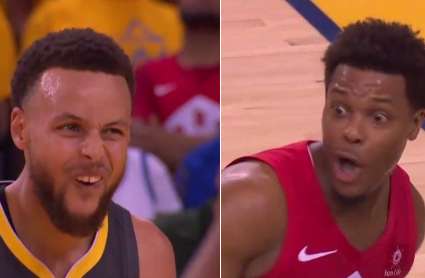 虎扑6月14日讯 今日猛龙与勇士的总决赛G6正在进行中,目前比赛进行到第三节,勇士83-79暂时领先。 美媒CBS Sports发布瞬间趣图,勇士后卫斯蒂芬-库里和猛龙后卫凯尔-洛瑞的表情包,并配文:“G6概括。”